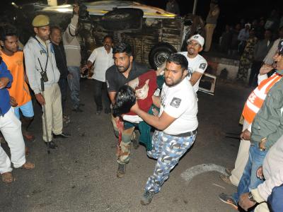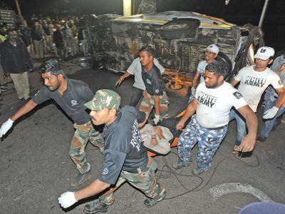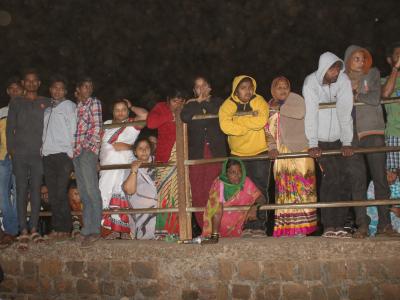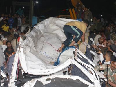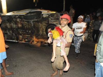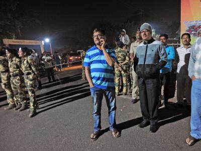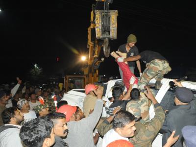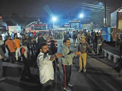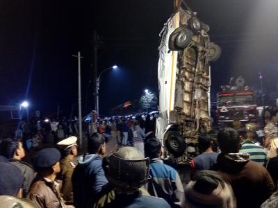 अपघातस्थळी मध्यरात्रीही बघ्यांची प्रचंड गर्दी झाली होती. त्यांत अनेकजण मोबाईलवर त्याचे फोटो काढत होते; त्यामुळे मदतकार्य करताना पोलिसांची तारांबळ उडाली. (दीपक जाधव)