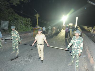 अपघातानंतर पोलिसांनी शिवाजी पुलावरील वाहतूक अशी बंद केली. (आदित्य वेल्हाळ)
