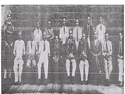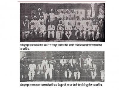 कोल्हापूर संस्थानमधील १९२८ चे काही न्यायाधीश आणि वकिलांच्या मेळाव्याप्रसंगीचे छायाचित्र.