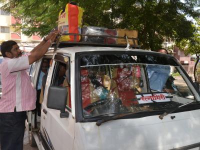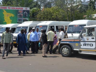 कोल्हापुरात ऐन दिवाळीत एस.टी.च्या कर्मचाऱ्यांनी पुकारलेल्या संपामुळे प्रवाशांची होणारी गैरसोय टाळण्यासाठी महाराष्ट्र राज्य परिवहन महामंडळ, प्रादेशिक परिवहन विभागाच्या वतीने कोल्हापुरातील मध्यवर्ती बसस्थानकांवर आलेल्या प्रवाशांना इच्छित स्थळी पाठविण्यासाठी खासगी वाहनांची सोय करण्यात आली होती. (छाया : नसीर अत्तार)