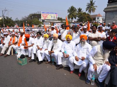 कोल्हापूर : अखिल भारतीय लिंगायत समाजाच्यावतीने विविध मागण्यांसाठी आयोजित करण्यात आलेल्या महामोर्चाला शिरोमणी अकाली दलानेही पाठिंबा दिला आहे. या समाजाचे सरदार जसकरण सिंग यांच्यासह तेराजण कोल्हापूरात दाखल झाले आहेत. त्यांनी या महामोर्चात आपल्या सहकाऱ्यांसह महामोर्चाच्या ठिकाणी दसरा चौकात ठिय्या मांडला आहे.