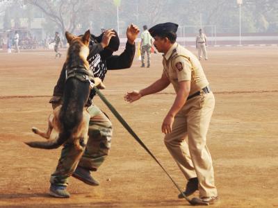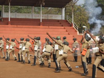 कोल्हापूर परिक्षेत्राचे विशेष पोलिस महानिरीक्षक विश्वास नांगरे-पाटील यांनी मंगळवारी जिल्हा पोलिस दलाची पहाणी केली. यावेळी पोलिस कवायत मैदानावर चित्तथरारक प्रात्यक्षिक सादर करण्यात आली. ( छाया : दिपक जाधव )