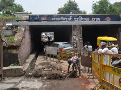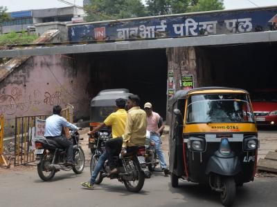 गेल्या आठ दिवसांपासून ड्रेनेज पाईपलाईन बदलण्याचा कामामुळे वाहतुकीसाठी बंद असलेला कोल्हापुरातील बाबूभाई परिख पूल पुन्हा खुला करण्यात आला. (छाया : नसीर अत्तार)