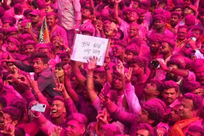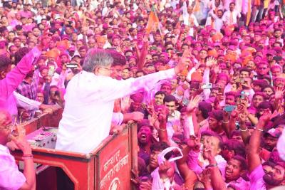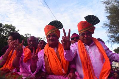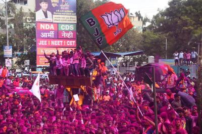 विजयोत्सवाच्या रॅलीमध्ये मोठ्या संख्येने भाजपाच्या कार्यकर्ते पाहायला मिळाले.