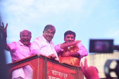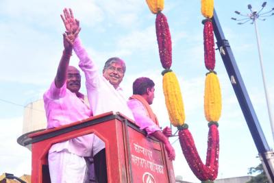 चंद्रकांत पाटील यांनी भाजपाच्या विजयानंतर भव्य रॅलीमध्ये कार्यकर्त्यांचे आभार मानले.