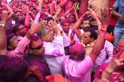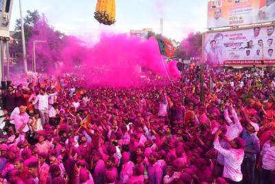 भाजपा कार्यकर्त्यांना या विजयोत्सवात विजयाचा गुलाल उधळत जल्लोष केला.