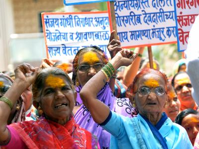 कोल्हापुरातील जिल्हाधिकारी कार्यालयावर नेहरू युवा देवदासी विकास मंडळातर्फे संजय गांधी निराधार अनुदान योजना व श्रावणबाळ सेवा राज्य निवृत्तीचा लाभ त्वरित मिळावा, याकरिता बुधवारी दुपारी मोर्चा काढण्यात आला. (छाया : नसीर अत्तार)