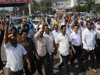 मोर्चा अडवून सरकारने मराठ्यांची गळचेपी केली आहे, असा आरोप करत शंखध्वनी करून मुख्यमंत्री, पालकमंत्री , पोलीस अधीक्षक यांचा सकल मराठा समाजातर्फे निषेध करण्यात आला.