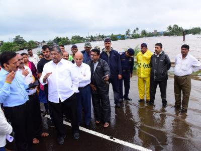 मुख्यमंत्र्यांसह कोल्हापूरचे पालकमंत्री चंद्रकांत पाटील आणि जलसंपदांमत्री गिरीश महाजन यांनीही कोल्हापूरचा पाहणी दौरा केला.