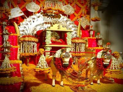 नवरात्रोत्सवाच्या दहाव्या दिवशी छत्रपतींच्या जुन्याराजवाड्यातील देवघरात तुळजाभवानी देवीची रथावर आरुढ झालेल्या रुपात बांधलेली नयनरम्य पुजा