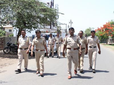 कोल्हापूर जिल्हयातील पाचगाव (ता. करवीर) येथील अशोक पाटील व धनाजी गाडगीळ यांच्या खून खटल्याचा निकाल सोमवारी लागला. यामुळे गावात अनुचित प्रकार घडू नये यासाठी पोलिसांनी गावातील मुख्य रस्त्यावर गस्त घातली. (छाया : दीपक जाधव)