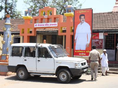 पाचगाव ग्रामपंचायतजवळील महादेव मंदिराजवळ करवीर पोलिसांचा बंदोबस्त होता. (छाया : दीपक जाधव)