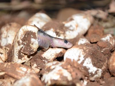 कोल्हापूर जिल्ह्यातील वाकरे येथे तुकाराम वर्पे यांच्या घराजवळील बिळात नागिणीने घातलेल्या अंड्यातून बाहेर आलेली नागाची पिल्ली. (छाया : अभिजित पाटील)