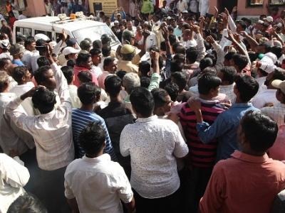 पोलीस परत गेल्या नंतर दानोळीत गावसभा झाली. (छाया -दीपक जाधव )