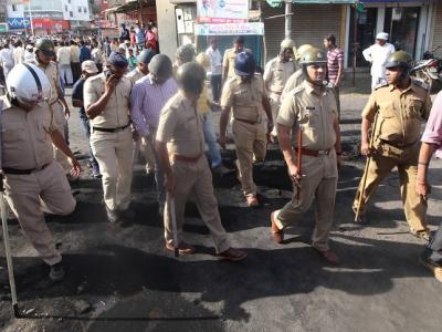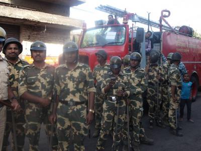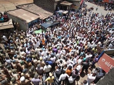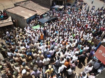 दानोळी गावात प्रचंड बंदोबस्त होता अप्पर पोलीस अधीक्षक श्रीनिवास घाडगे, पोलीस उपअधीक्षक विनायक नरळे, कृष्णात पिंगळे, सपोनि दत्तात्रय कदम, समीर गायकवाड यांच्यासह प्रशासन यंत्रणा व मोठा पोलीस फौजफाटा गावात दाखल झाला. (छाया -दीपक जाधव )