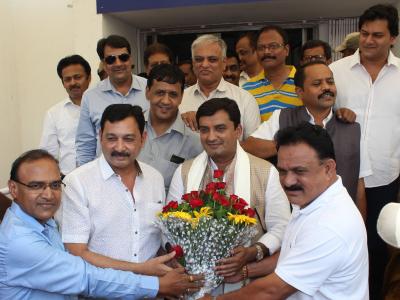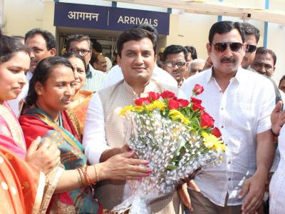 बहुप्रतीक्षित कोल्हापूर-मुंबई ‘एअर डेक्कन’विमानसेवा मंगळवारी सुरू झाली. यावेळी ‘एअर डेक्कन’च्या मुंबईहून कोल्हापूर विमानतळावर दाखल झालेल्या खासदार धनंजय महाडिक यांच्यासह प्रवाशांचा खासदार संभाजीराजे यांच्या हस्ते पुष्पगुच्छ देऊन स्वागत करण्यात आले. यावेळी चंद्रकांत जाधव, रामराजे कुपेकर, समीर शेठ आदी उपस्थित होते. (छाया : दीपक जाधव)