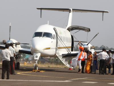 बहुप्रतीक्षित कोल्हापूर-मुंबई ‘एअर डेक्कन’विमानसेवा मंगळवारी सुरू झाली. (छाया : दीपक जाधव)