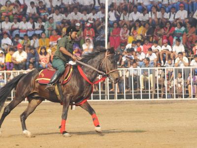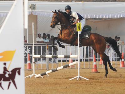 कोल्हापुरातील न्यू पॅलेस परिसरातील पोलो मैदानावर शनिवारपासून सुरू झालेल्या ‘द रॉयल कोल्हापूर हॉर्स शो’ स्पर्धेतील एक क्षण. ( छाया : आदित्य वेल्हाळ )