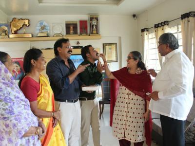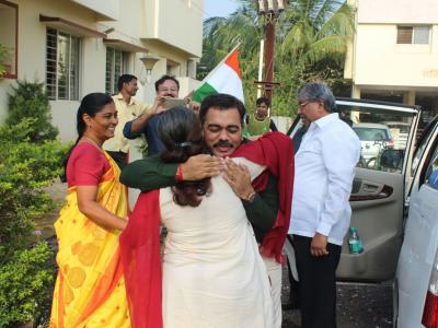 कोल्हापूरची सुवर्णकन्या नेमबाज तेजस्विनी सावंत-दरेकरनं अचूक निशाणा साधत भारताला स्पर्धेतलं पंधरावं सुवर्णपदक मिळवून दिलं. तिच्या या कामगिरीमुळे सकाळी तिच्या एस.एस.सी बोर्ड परिसरातील घरी तिची आई सुनीता व पती समीर दरेकर यांच्यासोबत आनंद व्यक्त करण्यासाठी मंत्री चंद्रकांत पाटील यांनी तिच्या घरी रवाना झाले, तेथे तेजस्विनीच्या आईला व नातेवाइकांना पेढे भरवून आनंद साजरा केला.