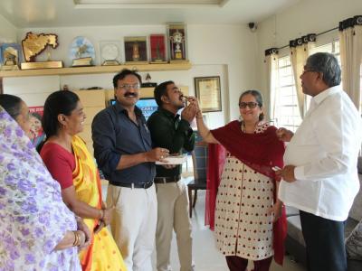 कोल्हापूरची सुवर्णकन्या नेमबाज तेजस्विनी सावंत-दरेकरनं अचूक निशाणा साधत भारताला स्पर्धेतलं पंधरावं सुवर्णपदक मिळवून दिलं. तिच्या या कामगिरीमुळे पुन्हा एकदा मंत्री चंद्रकांत पाटील तेजस्विनीच्या घरी रवाना झाले, तेथे तेजस्विनीच्या नातेवाइकांना पेढे भरवून आनंद साजरा केला.