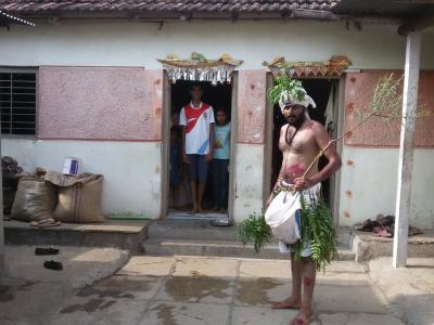 उदगांव येथील श्री जोगेश्वरी यात्रेच्या मुख्यं दिवशी पिशे मिरवणुक झाल्यानंतर अग्निप्रवेश करताना बाराबलूतेदारापैकी पिशे. (छाया- अजित चौगुले, उदगांव)