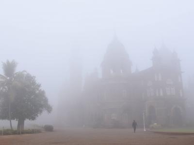 कोल्हापूरात पहाटेपासून दाट धुक्याची दुलई पहावयास मिळत आहे. दाट धुक्याने न्यू पॅलेस परिसरही वेढलेला होता. (छाया : आदित्य वेल्हाळ)