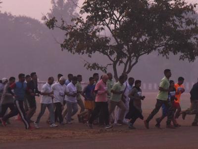 कोल्हापूरमध्ये होणाऱ्या सर्वांत मोठ्या हाफ महामॅरेथॉन स्पर्धेच्या निमित्ताने ‘लोकमत’तर्फे रविवारी आयोजित केलेल्या ‘प्रोमो रन’मध्ये शहर पोलीस उपअधीक्षक डॉ. प्रशांत अमृतकर यांनी सहभाग घेत, इतर स्पर्धकांचा उत्साह वाढविला. (छाया : नसीर अत्तार, आदित्य वेल्हाळ, दिपक जाधव)