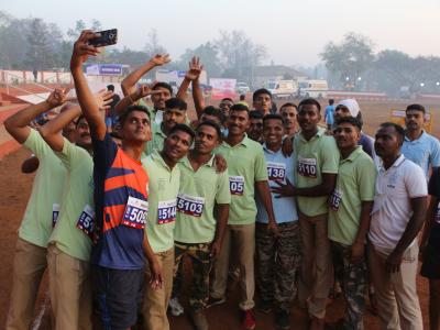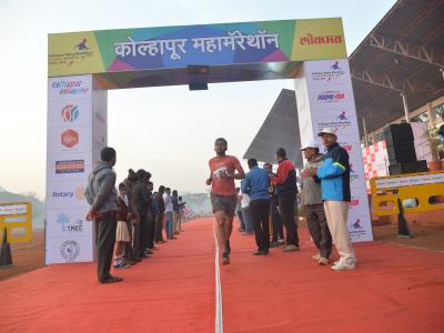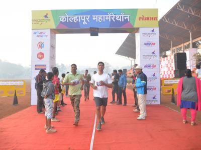 ‘प्रोमो रन’बाबत कोल्हापूरकरांमध्ये मोठी उत्सुकता होती. या स्पर्धेतील अंतिम टप्पा एक-एक खेळाडूने पार करताच उपस्थितांनी टाळ्यांच्या गजरात त्यांचे स्वागत केले. (छाया : नसीर अत्तार, आदित्य वेल्हाळ, दिपक जाधव)
