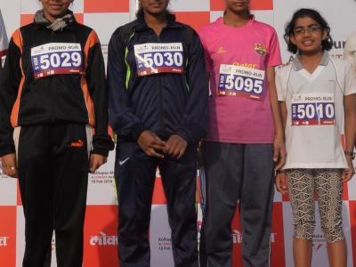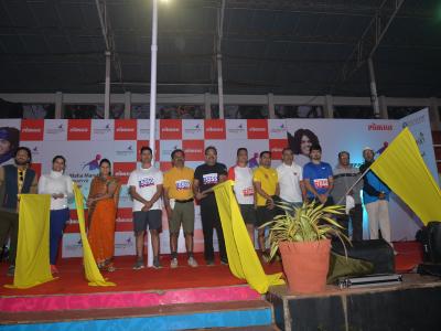कोल्हापूरमध्ये होणाऱ्या सर्वांत मोठ्या हाफ महामॅरेथॉन स्पर्धेच्या निमित्ताने ‘लोकमत’तर्फे शहरात रविवारी झालेल्या ‘प्रोमो रन’साठी रुचिरा दर्डा, संजय पाटील, मकरंद देशमुख, आशिष जैन, आदी उपस्थित होते. (छाया : नसीर अत्तार, आदित्य वेल्हाळ, दिपक जाधव)