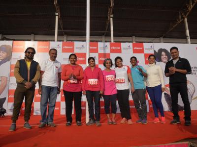 कोल्हापूरमध्ये होणाऱ्या सर्वांत मोठ्या हाफ महामॅरेथॉन स्पर्धेच्या निमित्ताने ‘लोकमत’तर्फे शहरात रविवारी झालेल्या ‘प्रोमो रन’मधील १० किलोमीटर महिला गटातील विजेत्यासह रुचिरा दर्डा, संजय पाटील, मकरंद देशमुख, आशिष जैन, आदी उपस्थित होते. (छाया : नसीर अत्तार, आदित्य वेल्हाळ, दिपक जाधव)