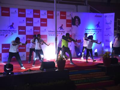 कोल्हापुरातील पोलीस ग्राउंड होणाऱ्या सर्वांत मोठ्या हाफ महामॅरेथॉन स्पर्धेच्या निमित्ताने ‘लोकमत’तर्फे रविवारी आयोजित केलेल्या ‘प्रोमो रन’मध्ये गीत-संगीताच्या तालावरील ‘झुम्बा’ डान्सद्वारे वॉर्म अप करून नागरिक, धावपटू हे प्रोमो रनसाठी सज्ज झाले.(छाया : नसीर अत्तार, आदित्य वेल्हाळ, दिपक जाधव)