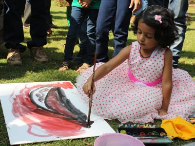 कोल्हापुरात टाउन हॉल म्युझिअम बागेत रविवारी ‘रंगबहार’च्या वतीने आयोजित रंगसुरांच्या मैफलीला बहर आला. चित्र रेखाटताना चिमुकली. (छाया : दीपक जाधव)