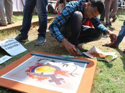कोल्हापुरात टाउन हॉल म्युझिअम बागेत रविवारी ‘रंगबहार’च्या वतीने आयोजित रंगसुरांच्या मैफलीला बहर आला. रंगावलीतून स्त्रीभ्रूण हत्येविषयी जागृती करण्यात आली. (छाया : दीपक जाधव)