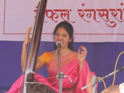 कोल्हापुरात टाउन हॉल म्युझिअम बागेत रविवारी ‘रंगबहार’च्या वतीने आयोजित रंगसुरांच्या मैफलीला बहर आला. गायन सादर करताना गौरी पाध्ये. (छाया : दीपक जाधव)