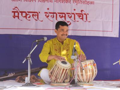 कोल्हापुरात टाउन हॉल म्युझिअम बागेत रविवारी ‘रंगबहार’च्या वतीने आयोजित रंगसुरांच्या मैफलीला बहर आला. तबलावादन करताना प्रशांत देसाई . (छाया : दीपक जाधव)