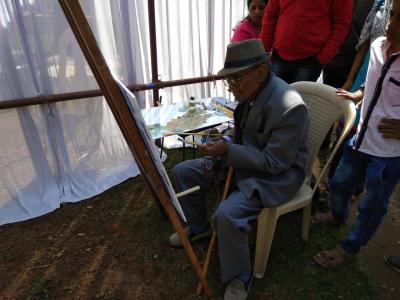 कोल्हापुरात टाउन हॉल म्युझिअम बागेत रविवारी ‘रंगबहार’च्या वतीने आयोजित रंगसुरांच्या मैफलीला बहर आला. चित्र साकारताना जेष्ठ चित्रकार विश्रांत पोवार .