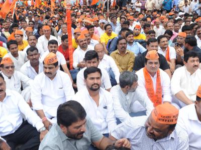 कोल्हापुरातील ऐतिहासिक दसरा चौकात गुरुवारी सकल मराठा क्रांती ठोक मोर्चातर्फे आयोजित जाहीर एल्गार सभेला जिल्ह्यातील राजकीय नेत्यांनीही उत्स्फूर्तपणे उपस्थिती लावली. यामध्ये आ. चंद्रदीप नरके, आ. सत्यजित पाटील-सरुडकर, वीरेंद्रसिंह मंडलिक, आ. सतेज पाटील, भूषण पाटील, आदींचा सहभाग राहिला. (छाया : आदित्य वेल्हाळ)