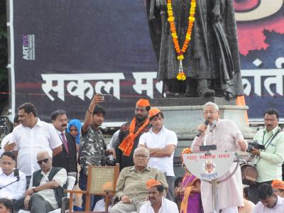 कोल्हापुरातील ऐतिहासिक दसरा चौकात गुरुवारी सकल मराठा क्रांती ठोक मोर्चातर्फे आयोजित जाहीर एल्गार सभेत शाहू छत्रपती यांनी मार्गदर्शन केले. यावेळी मराठा बांधवांची तुडुंब गर्दी झाली होती.(छाया : आदित्य वेल्हाळ)