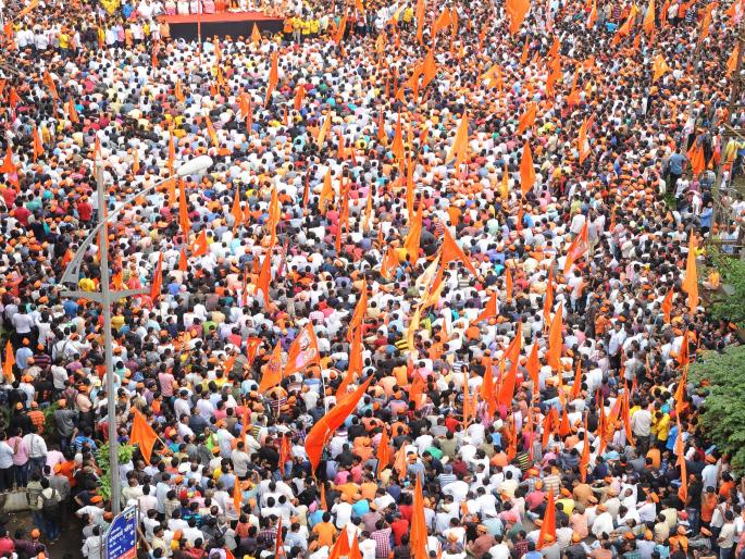1 / 23कोल्हापुरातील ऐतिहासिक दसरा चौकात गुरुवारी सकल मराठा क्रांती ठोक मोर्चातर्फे आयोजित जाहीर एल्गार सभेला मराठा बांधवांची तुडुंब गर्दी.(छाया : आदित्य वेल्हाळ)2 / 23कोल्हापुरातील ऐतिहासिक दसरा चौकात गुरुवारी सकल मराठा क्रांती ठोक मोर्चातर्फे आयोजित जाहीर एल्गार सभेनंतर आमदार चंद्रदीप नरके यांनी मराठी गाण्यावर असा ठेका धरला. (छाया : आदित्य वेल्हाळ)3 / 23मराठा आरक्षणाच्या मागणीसाठी गुरुवारी सकल मराठा क्रांती ठोक मोर्चातर्फे पुकारण्यात आलेल्या बंदमुळे सार्वजनिक वाहतूक बंद राहिल्याने प्रवाशांना अशी पायपीट करावी लागली. (छाया : आदित्य वेल्हाळ)4 / 23कोल्हापुरातील ऐतिहासिक दसरा चौकात गुरुवारी सकल मराठा क्रांती ठोक मोर्चातर्फे आयोजित जाहीर एल्गार सभेसाठी वडणगे (ता. करवीर) येथील मराठा बांधवांनी शिवछत्रपतींची मूर्ती डोक्यावरून घेऊन येत उत्स्फूर्त सहभाग नोंदविला.(छाया : आदित्य वेल्हाळ)5 / 23कोल्हापुरातील ऐतिहासिक दसरा चौकात गुरुवारी सकल मराठा क्रांती ठोक मोर्चातर्फे आयोजित जाहीर एल्गार सभेपूर्वी आॅगस्ट क्रांती दिनानिमित्त वीरमातांच्या हस्ते ध्वजारोहण करण्यात आले. यानंतर राष्टÑगीतासाठी उभारलेले मराठा बांधव.(छाया : आदित्य वेल्हाळ)6 / 23कोल्हापुरातील ऐतिहासिक दसरा चौकात गुरुवारी सकल मराठा क्रांती ठोक मोर्चातर्फे आयोजित जाहीर एल्गार सभेसाठी आमदार सतेज पाटील, खासदार धनंजय महाडिक, मालोजीराजे यांच्यासह चंद्रकांत जाधव, लाला गायकवाड, भूषण पाटील यांनी उत्स्फूर्त सहभाग नोंदविला.(छाया : आदित्य वेल्हाळ)7 / 23कोल्हापुरातील ऐतिहासिक दसरा चौकात गुरुवारी सकल मराठा क्रांती ठोक मोर्चातर्फे आयोजित जाहीर एल्गार सभेला महापौर शोभा बोंद्रे यांच्यासह वीर माता उपस्थित होत्या. (छाया : आदित्य वेल्हाळ)8 / 23कोल्हापुरातील ऐतिहासिक दसरा चौकात गुरुवारी सकल मराठा क्रांती ठोक मोर्चातर्फे आयोजित जाहीर एल्गार सभेवेळी मराठा तरुणांनी हातातील भगवे झेंडे उंचावून असा जल्लोष केला. (छाया : आदित्य वेल्हाळ)9 / 23कोल्हापुरातील ऐतिहासिक दसरा चौकात गुरुवारी सकल मराठा क्रांती ठोक मोर्चातर्फे आयोजित जाहीर एल्गार सभेत शाहू छत्रपती यांनी मार्गदर्शन केले. यावेळी मराठा बांधवांची तुडुंब गर्दी झाली होती.(छाया : आदित्य वेल्हाळ)10 / 23 कोल्हापुरातील ऐतिहासिक दसरा चौकात गुरुवारी सकल मराठा क्रांती ठोक मोर्चातर्फे आयोजित जाहीर एल्गार सभेपूर्वी आॅगस्ट क्रांती दिनानिमित्त वीरमातांच्या हस्ते ध्वजारोहण करण्यात आले. यावेळी शाहू छत्रपतींसह मान्यवर व मराठा समाजबांधवांची लक्षणीय उपस्थिती होती. (छाया : आदित्य वेल्हाळ)11 / 23कोल्हापुरातील ऐतिहासिक दसरा चौकात गुरुवारी सकल मराठा क्रांती ठोक मोर्चातर्फे आयोजित जाह