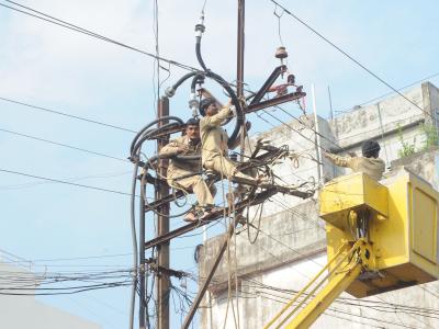 कोल्हापूर : जोरदार वादळी वारा व अवकाळी पावसाने गुरुवारी महावितरणचे लाखो रुपयांचे नुकसान झाले. महावितरणने वीज पुरवठ्याची पर्यायी व्यवस्था करुन युध्दपातळीवर खांब, रोहीत्रे, तारा जोडणे आदी दुरुस्तीचे काम हाती घेतले आहे. कोल्हापूरातून महावितरणची पाच पथके इचलकरंजीत शनिवारी दाखल झाली असून दुरुस्तीच्या कामात सहभागी झाली आहेत. (छाया आदित्य वेल्हाळ)