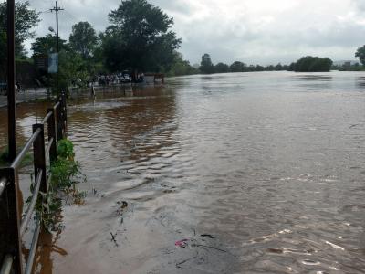 गेले दोन दिवस जिल्ह्यात जोरदार पाऊस सुरू असल्याने नद्यांचे पाणी पात्राबाहेर फेकले गेले आहे. (छाया : नासिर अत्तार)