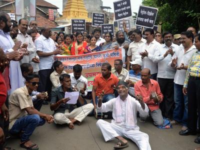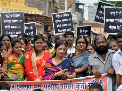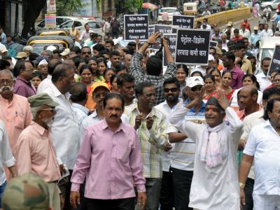 शासनाने केलेल्या पेट्रोल-डिझेल दरवाढीच्या निषेधार्थ सर्वपक्षीय कृती समितीने मंगळवारी काढलेल्या पायी रॅलीत मरगाई भजनी मंडळाने सादर केलेले निषेधाचे भजन व कार्यकर्त्यांची कला विशेष आकर्षण ठरले.(छाया: नसीर अत्तार)