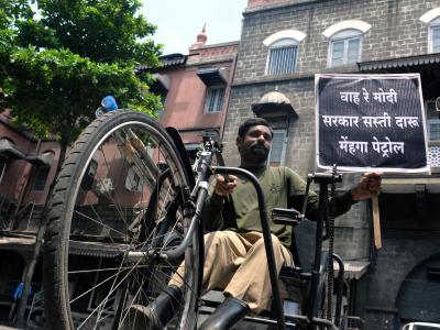 पायी रॅलीमध्ये एका अंपगाच्या सायकलीसह अनेक युवक-युवतीही सहभागी झाले होते, अनेकांच्या हातातील निषेधाचे फलक लक्षवेधी होते, त्यामध्ये ‘वाह रे सरकार सस्ती दारु महंगा पेट्रोल’ हा फलक साऱ्यांच्या चर्चेचा ठरत होता.