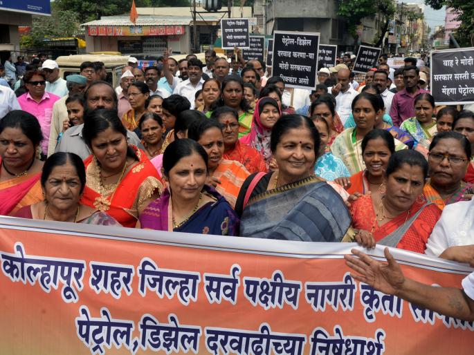1 / 6शासनाने केलेल्या पेट्रोल-डिझेल दरवाढीच्या निषेधार्थ सर्वपक्षीय कृती समितीने मंगळवारी काढलेल्या पायी रॅलीत मरगाई भजनी मंडळाने सादर केलेले निषेधाचे भजन व कार्यकर्त्यांची कला विशेष आकर्षण ठरले.(छाया: नसीर अत्तार)2 / 6शासनाने केलेल्या पेट्रोल-डिझेल दरवाढीच्या निषेधार्थ सर्वपक्षीय कृती समितीने मंगळवारी काढलेल्या पायी रॅलीत मरगाई भजनी मंडळाने सादर केलेले निषेधाचे भजन व कार्यकर्त्यांची कला विशेष आकर्षण ठरले.(छाया: नसीर अत्तार)3 / 6पायी रॅलीमध्ये महापौर शोभा बोंद्रे, उपमहापौर महेश सावंत, माजी महापौर आर. के. पोवार, नगरसेवक, नगरसेविका, कार्यकर्ते मोठ्या संख्येने सहभागी झाले होते. (छाया: नसीर अत्तार)4 / 6पायी रॅलीमध्ये महापौर शोभा बोंद्रे, उपमहापौर महेश सावंत, माजी महापौर आर. के. पोवार, नगरसेवक, नगरसेविका, कार्यकर्ते मोठ्या संख्येने सहभागी झाले होते. (छाया: नसीर अत्तार)5 / 6पायी रॅलीमध्ये महापौर शोभा बोंद्रे, उपमहापौर महेश सावंत, माजी महापौर आर. के. पोवार, नगरसेवक, नगरसेविका, कार्यकर्ते मोठ्या संख्येने सहभागी झाले होते. (छाया: नसीर अत्तार)6 / 6 पायी रॅलीमध्ये एका अंपगाच्या सायकलीसह अनेक युवक-युवतीही सहभागी झाले होते, अनेकांच्या हातातील निषेधाचे फलक लक्षवेधी होते, त्यामध्ये ‘वाह रे सरकार सस्ती दारु महंगा पेट्रोल’ हा फलक साऱ्यांच्या चर्चेचा ठरत होता.