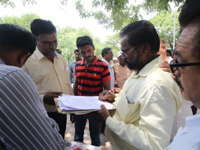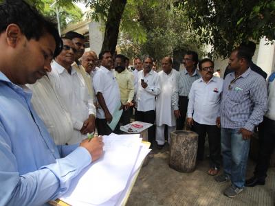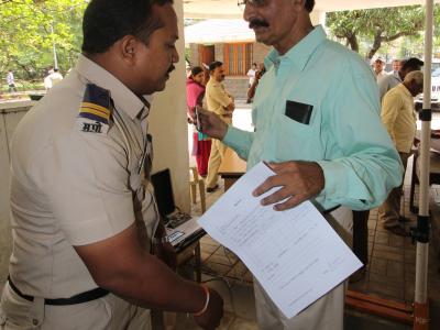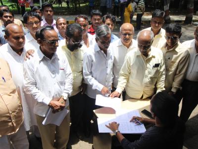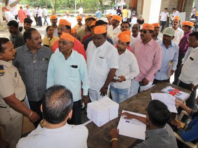कोल्हापुरातील जिल्हाधिकारी कार्यालयात सोमवारी मराठा आरक्षणासंदर्भातील जनसुनावणीसाठी निवेदन देण्यापूर्वी त्याची नोंद बाहेर कर्मचाऱ्यांकडून केली जात होती. (छाया : दीपक जाधव )