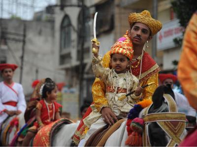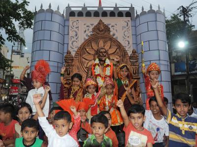 कोल्हापूरातील मिरजकर तिकटी येथील राजर्षी शाहू तरुण मंडळ आयोजित मंगळवार पेठ शिवजयंती उत्सवाची सांगता मिरवणूकीने झाली. यात बाल शिवाजींची वेशभूषा केलेल्या बालकाने सर्वांचे लक्ष वेधून घेतले.