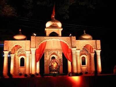 कोल्हापुरातील लाईन बझार परिसरातील ‘तडाखा तालीम मंडळा’ने शिवजयंतीनिमित्त असा देखणा महल उभारला आहे. त्याला आकर्षक विद्युत रोषणाई करण्यात आली आहे. (दीपक जाधव)
