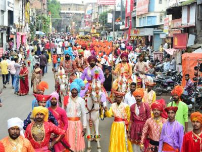 दुसरीकडे न्यू पॅलेसमधून शाहू छत्रपतींचा लवाजमा निघाला, उंट, घोडेस्वार, छत्रपतींच्या मावळ्यांची वेशभूषा केलेले कलाकार, ढोल, ताशे, नगारे, लेझीम व झांज पथक, पोलीस बँन्ड अशा रंगारंग सोहळ्यांने कोल्हापूर दूमदूमून गेले.