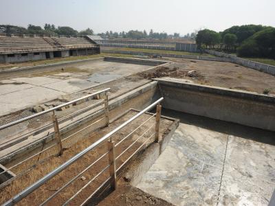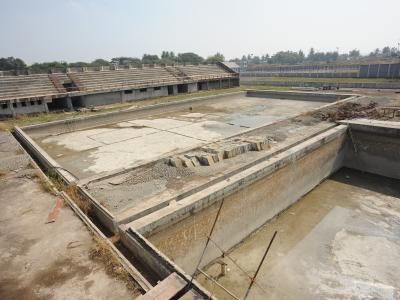 दुरवस्था क्रीडासंकुलात बांधण्यात आलेल्या जलतरण तलावाची