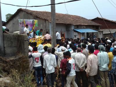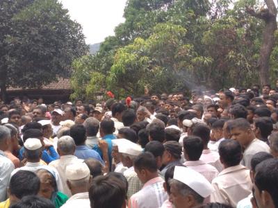 निलेश विठ्ठल कंदुरकरचे पार्थिव दुपारी त्याच्या पन्हाळा तालुक्यातील बादेवाडी या गावी आणण्यात आले. त्याच्या अंत्यदर्शनाला पंचक्रोशी लोटली होती. त्याच्यावर गावातच अंत्यसंस्कार करण्यात आले. (छाया : विक्रम पाटील, करंजफेण)